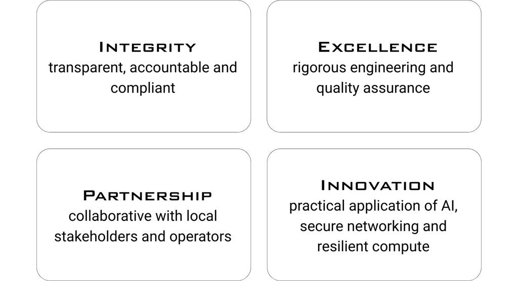 To be the partner of choice for government and defence organisations across the region, delivering technology driven readiness and reliable mission outcomes.